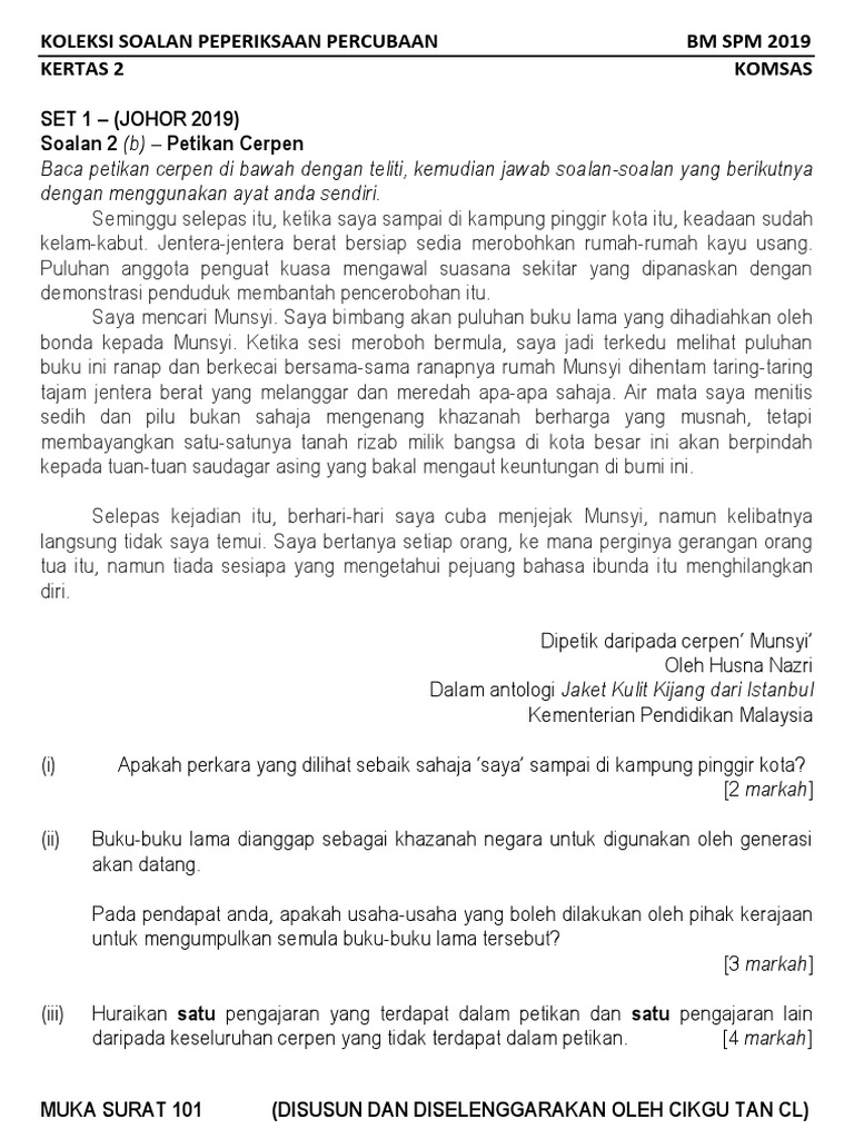 Himpunan Soalan 2 B Cerpen Munsyi 2019 Pp Bm Pdf